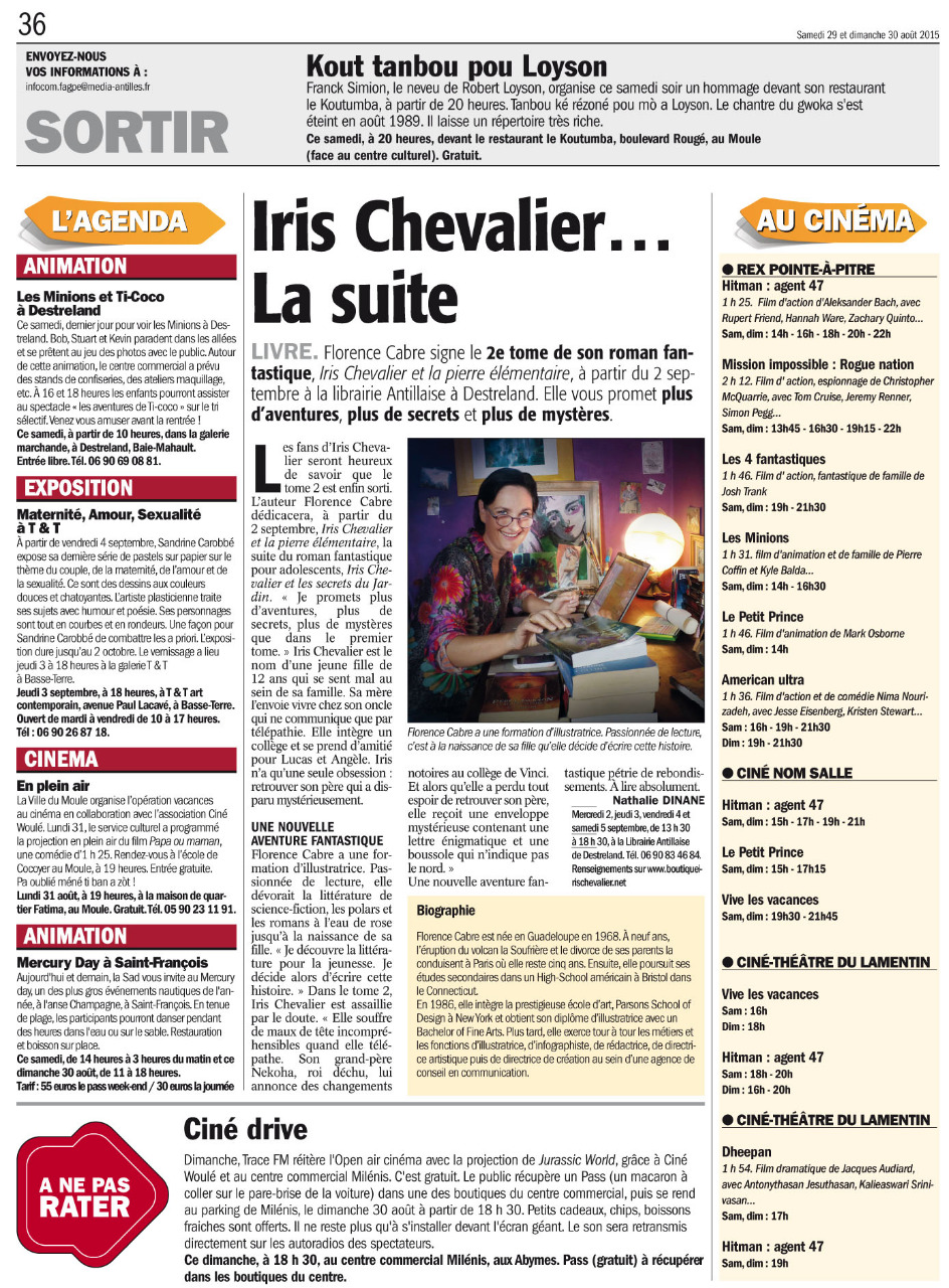 Parution du samedi 29 et dimanche 30 aout 2015